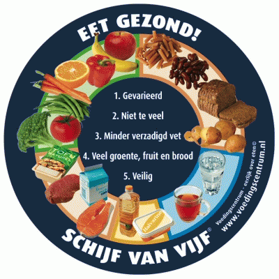 - Kijk naar de schijf van vijf om gezond en gevarieeerd te kunnen eten!